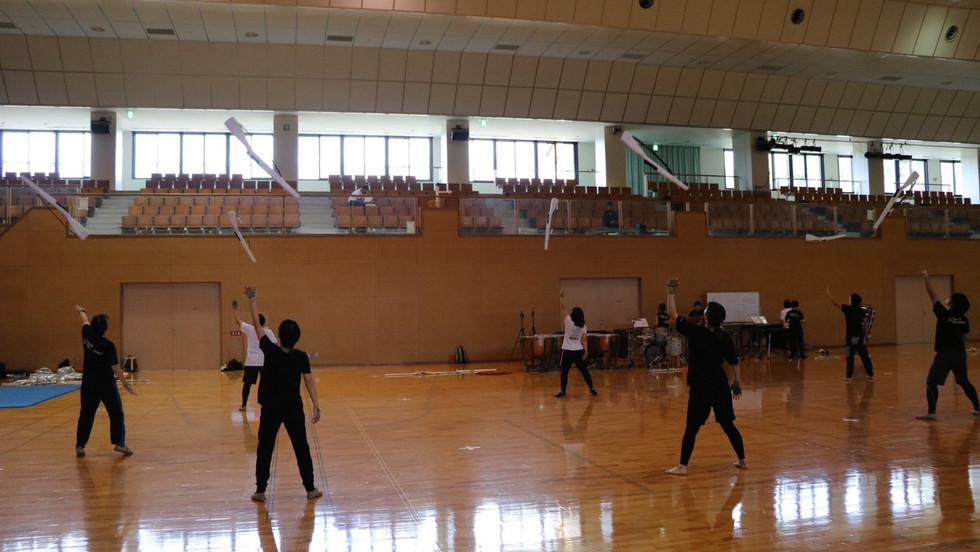 カラーガードは、振り付けはある程度終わり、振り合わせを中心に練習をしています!!